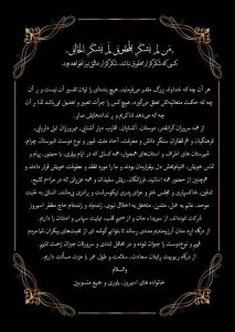 سپاسنامه خانواده فرهنگی فرهیخته زنده یاد حاج مظفر اسهروز در پی همراهی گسترده مردم در مراسم تشییع و تدفین